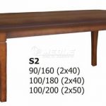 Blat stołu wykonany jest z płyty MDF oklejonej dwustronnie okleiną naturalną (dębową lub bukową), klejem nie emitującym rakotwórczych związków na bazie wody. Nawierzchnia blatu stołu pokryta jest dwuskładnikowymi lakierami poliuretanowymi o: